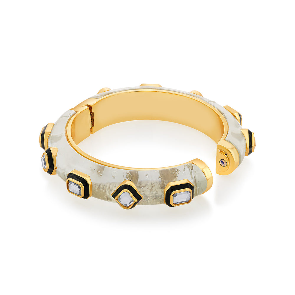For cocktail, if you’ve already upgraded your wardrobe with all-eyes-on-me ensembles, it’s time you turned your attention to your jewelry box. This cuff and ring are maximalist, pair with anything with ease and sculpted with shimmering mirrors. For a fail-proof result, style them with a black sari and a slick bun.