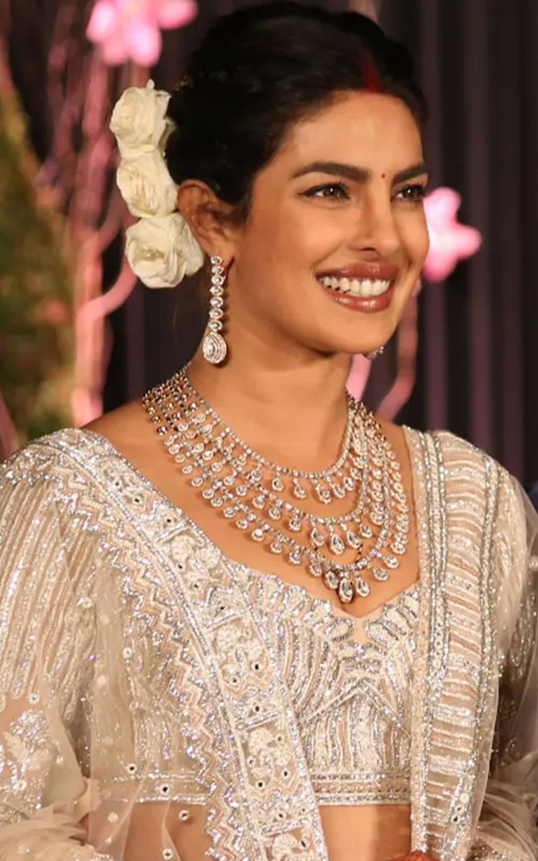 Known for her effortless sartorial choices, this global icon showed us her glamorous side with an unforgettable reception look, major on the sparkle quotient.