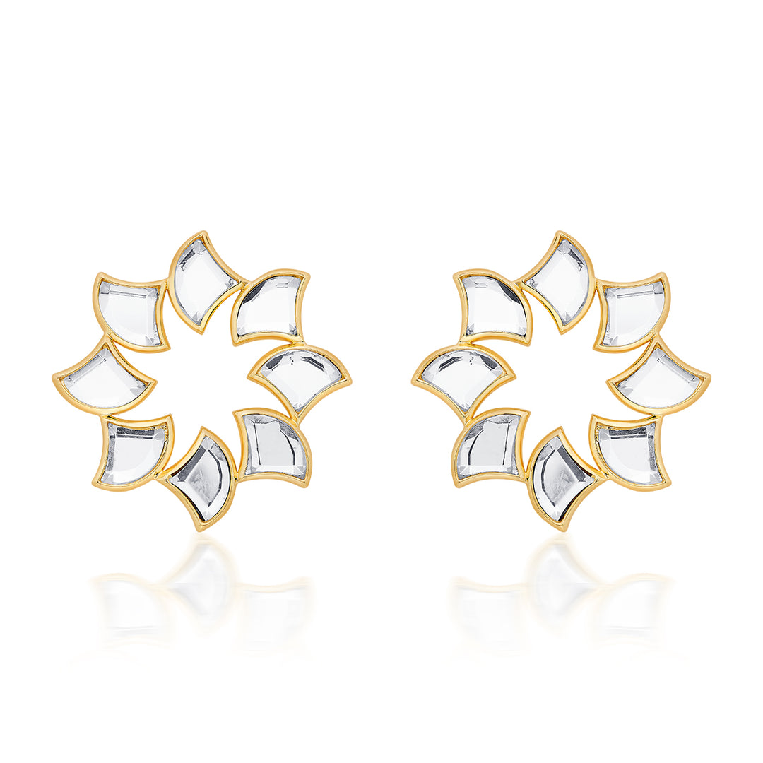 Sweep your hair up and add glittering mirror danglers to match her elegance.