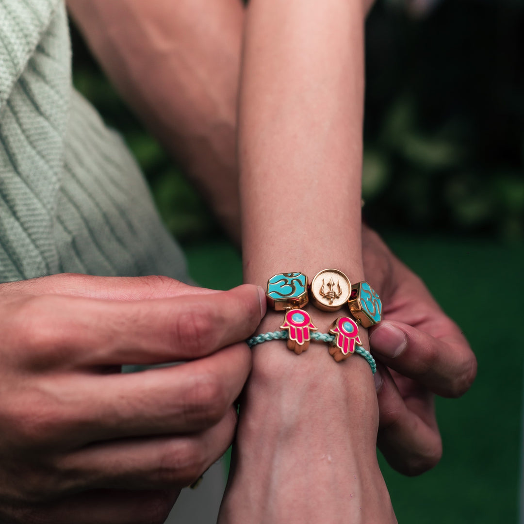 PLAY! By Isharya incorporates the star symbol as a charm to be utilized to its full potential by pairing it with other cosmic symbols as a layered necklace or bracelet, perfect for gifting as a rakhi.