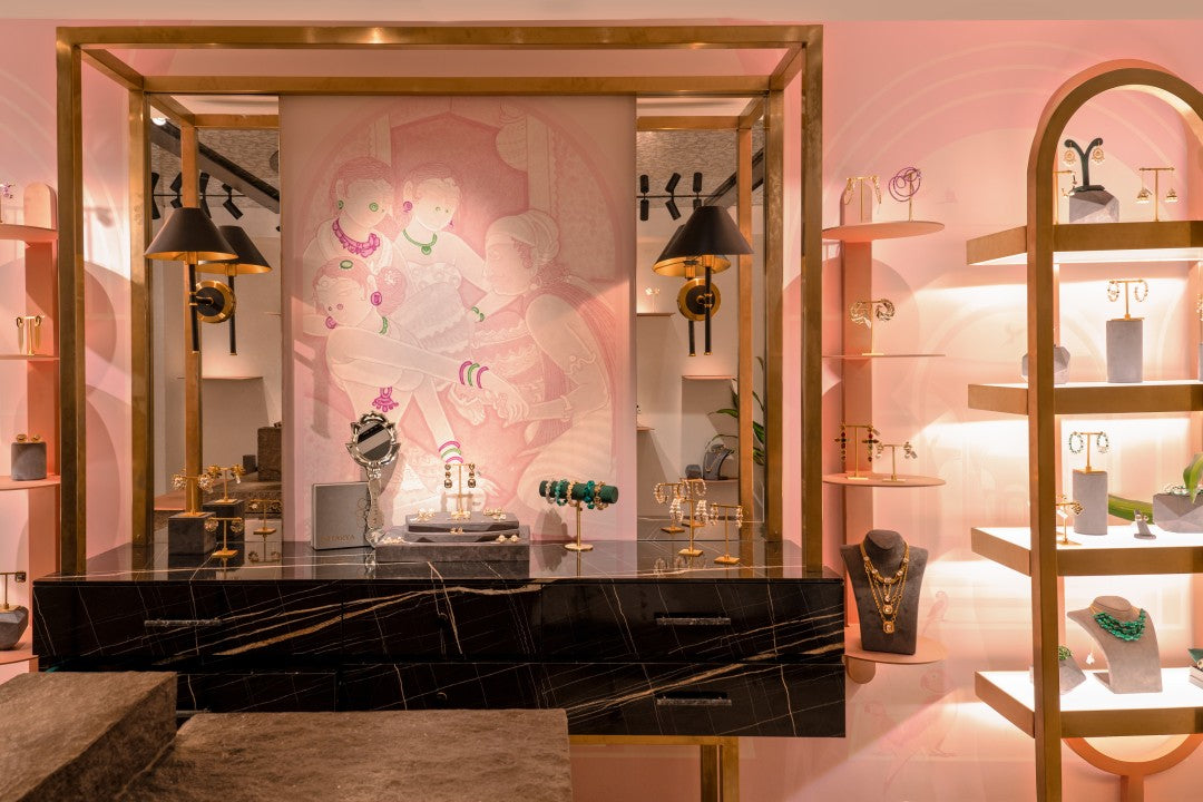 With an evocative lighting structure & bespoke wallpaper across the store, our Bengaluru outpost is an artistic multiverse designed to indulge in the best modern Indian jewelry.
