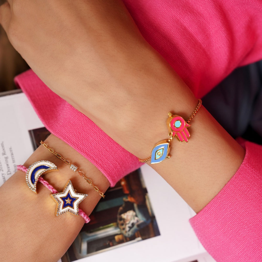 Treat yourself with the Star Ecru Charm this season because guess what…you are a star! Alternatively, style the Evil Eye Cyan Charm with practically — they are so trendy right now!