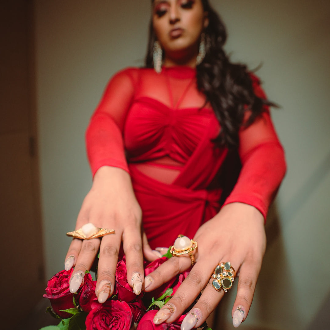 Whether it’s opera gloves or ornate hair embellishments, this year will be all about expressing your individualism and going all out. Round off these looks with the most impactful ring of them all — cocktail rings with unmissable stones.