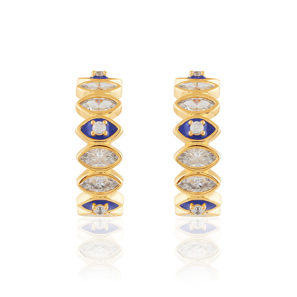 The Halo Huggies blend blue-and-white enamel with crystal zirconia, crafted in 18k gold-plated brass. Hypoallergenic and bold, these huggies are inspired by spiritual symbols and healing stones — designed to protect and elevate.