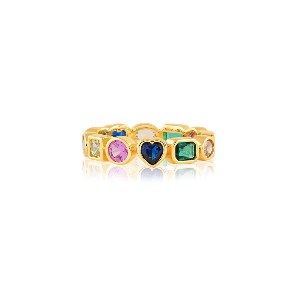 Make a playful promise to yourself with the Karma Loop Infinity Ring. A bold fusion of colour and symbolism, this 18k gold-plated enamel ring features multicoloured accents and crystal zirconia that channel healing energy and spiritual flair. Stack it with solids or wear solo for festive flair.