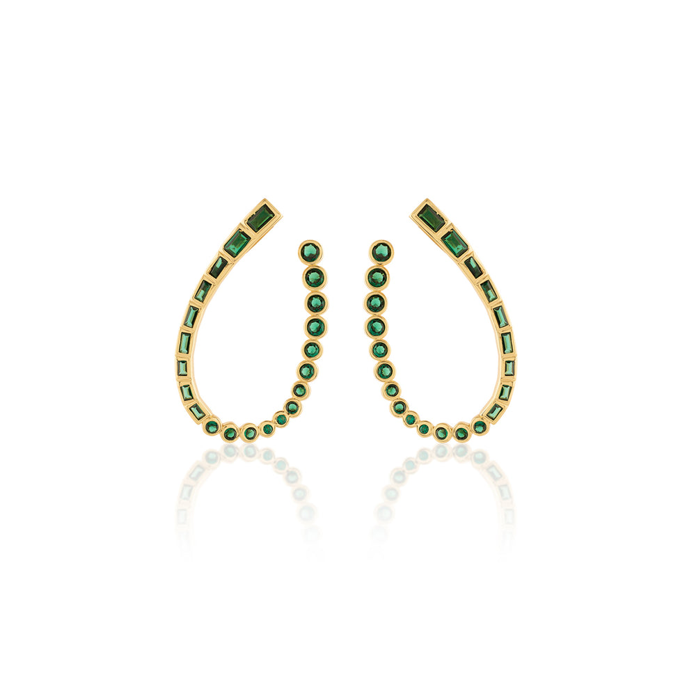 Inspired by the playful spirit of summer, these earrings are crafted in brass and plated with 18k gold. Featuring brilliant crystal zirconia stones, these lightweight earrings offer the perfect pops of colour to everything from sundresses to linen shirts.
