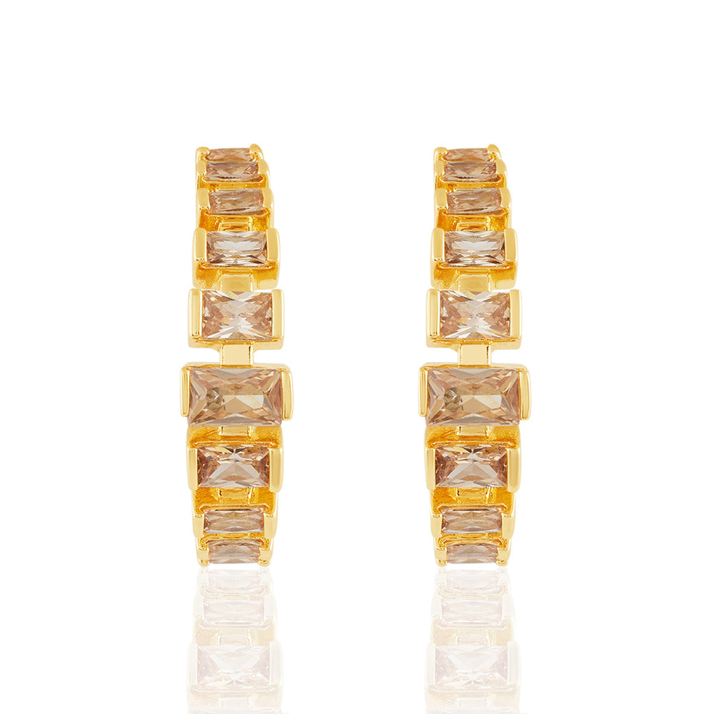 The Solar Flare Hoops are crafted in 18k gold-plated brass and radiate positivity with yellow crystal zirconia. Hypoallergenic and high-impact, they draw inspiration from spiritual energy and healing stones.