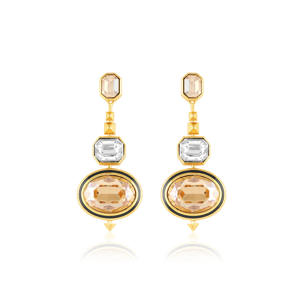 These Tarot-inspired dangler earrings are crafted in brass with 18k gold plating and high-quality crystals. Hypoallergenic and luxuriously light, they elevate weddings, cocktails, and celebrations alike. Style bold. Shop now.