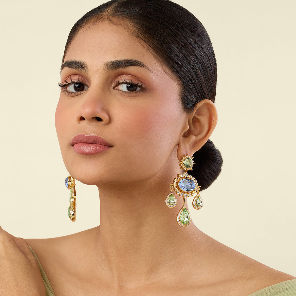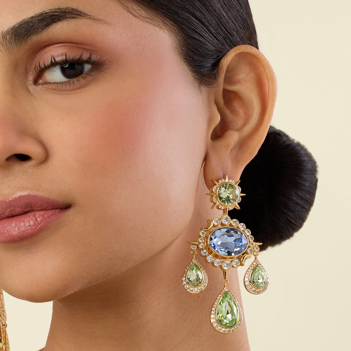 These Tarot-inspired dangler earrings are crafted in brass with 18k gold plating and high-quality crystals. Hypoallergenic and luxuriously light, they elevate weddings, cocktails, and celebrations alike. Style bold. Shop now.