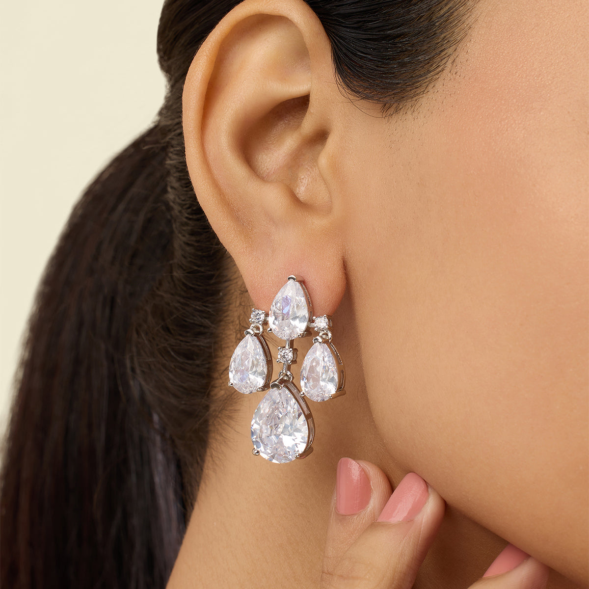Turn heads with Isharya’s dangler earrings, featuring special-cut crystal zirconia stones. Crafted in brass with rhodium plating, these hypoallergenic statement earrings exude timeless glamour. Perfect for weddings, festive soirées, and cocktail nights. Shop unmatched luxury now.