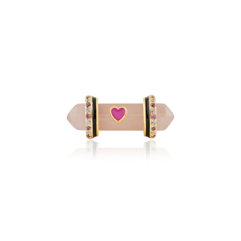 Turn up the charm with the Blush Aura Amulet Ring. A bold rose quartz centre meets black and dark pink enamel detailing, set in 18k gold-plated brass. Adorned with sparkling CZs, it’s perfect for styling with breezy festive looks or a glam brunch outfit.