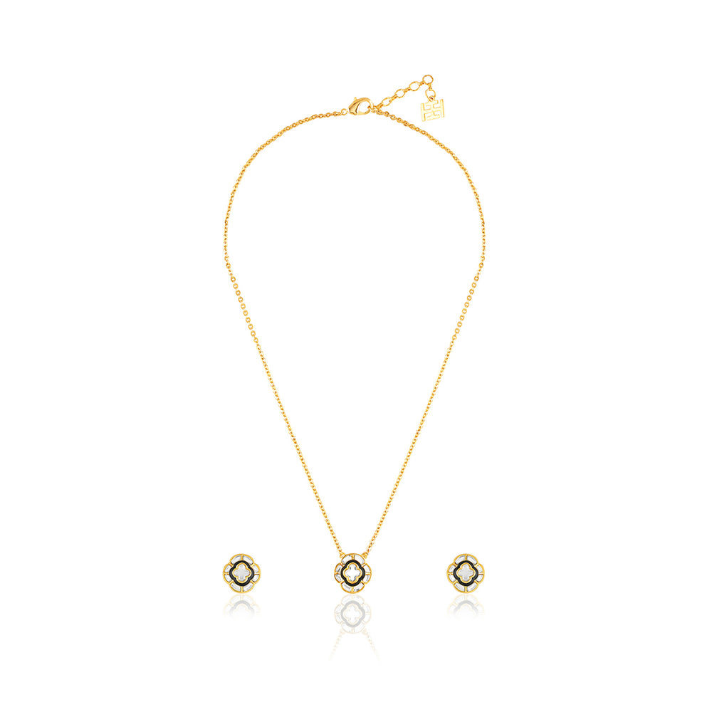 The Midnight Muse Mirror Set pairs hand-cut mirrors with black enamel and 18k gold-plated brass for a striking, statement finish. Hypoallergenic and crafted with care, it blends Art Deco elegance with modern luxury.