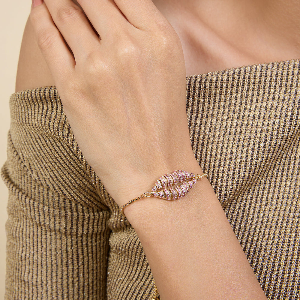 Be the life of the party with our Party Pout Bolo Bracelet. Made with high quality CZ and enamel, this elegant bracelet features a stunning red color and is plated with 0.3 Micron Gold for a luxurious touch. Perfect for all occasions, it's the ultimate wristwear accessory.