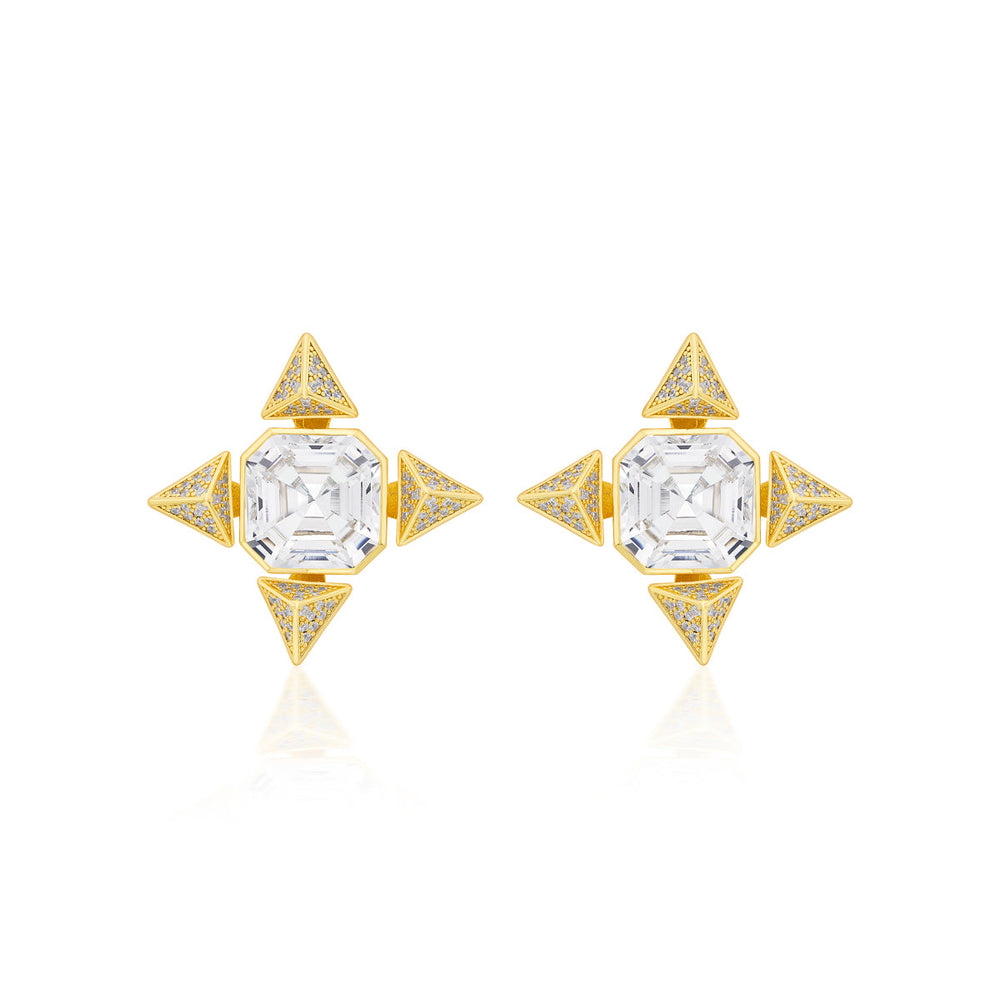 Finish your look with these luxurious Gold Moss Star Earrings. Embedded with dazzling crystals and CZ stones, these 18 Kt gold plated earrings make a statement.