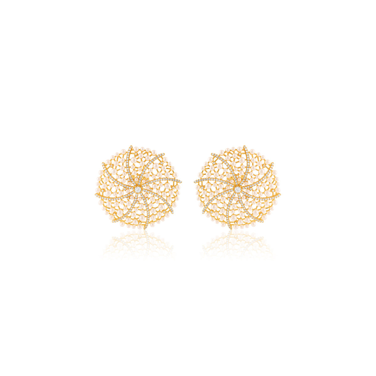 lluminate every occasion with these statement earrings, crafted in brass with 18k gold plating. Featuring pearls, they echo cosmic constellations and ancient symbolism. Perfect for weddings, cocktails, and festive nights.