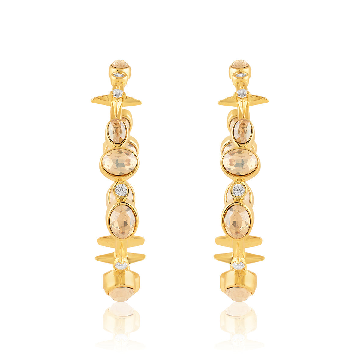 lluminate every occasion with these statement earrings, crafted in brass with 18k gold plating. Featuring crystal zirconia stones, they echo cosmic constellations and ancient symbolism. Perfect for weddings, cocktails, and festive nights.