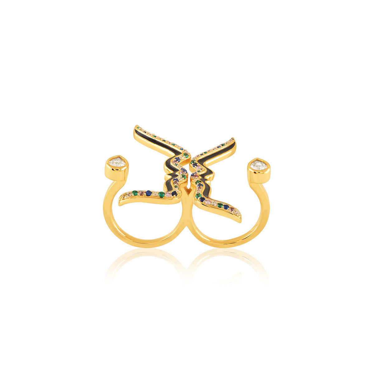 Anoma Two Finger Ring In 18Kt Gold Plated