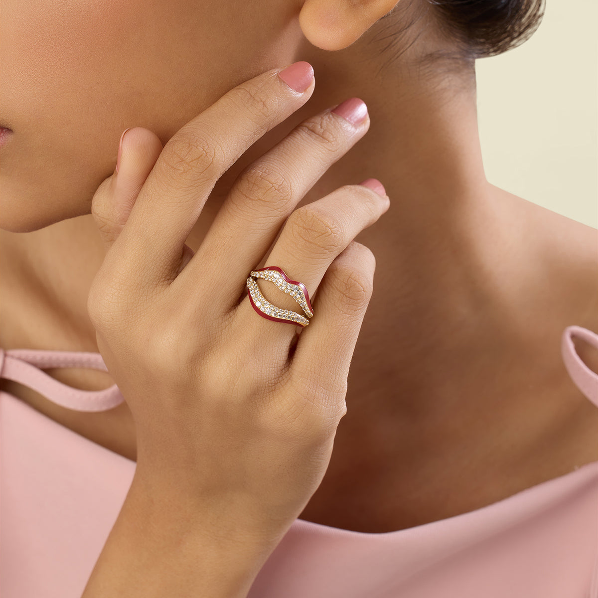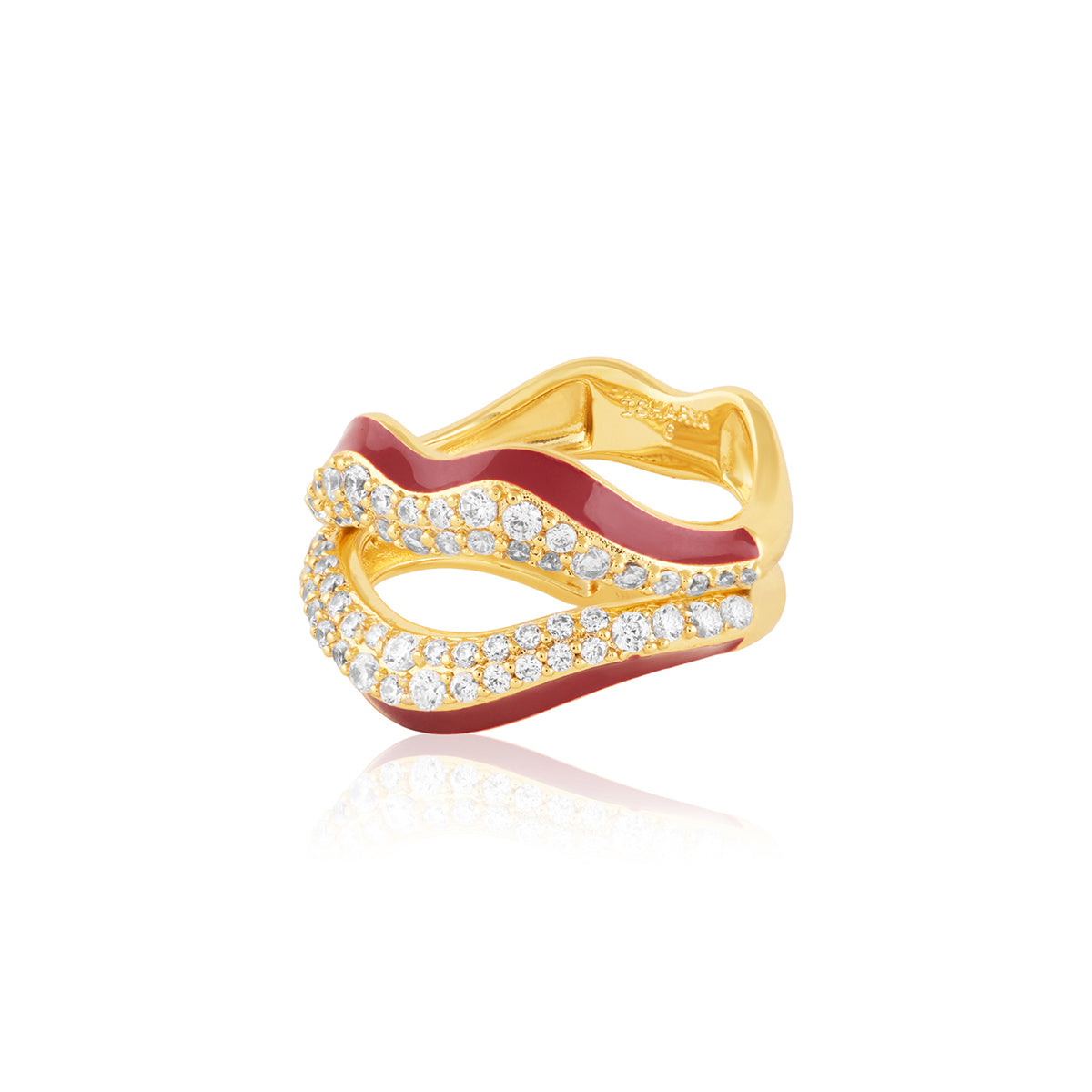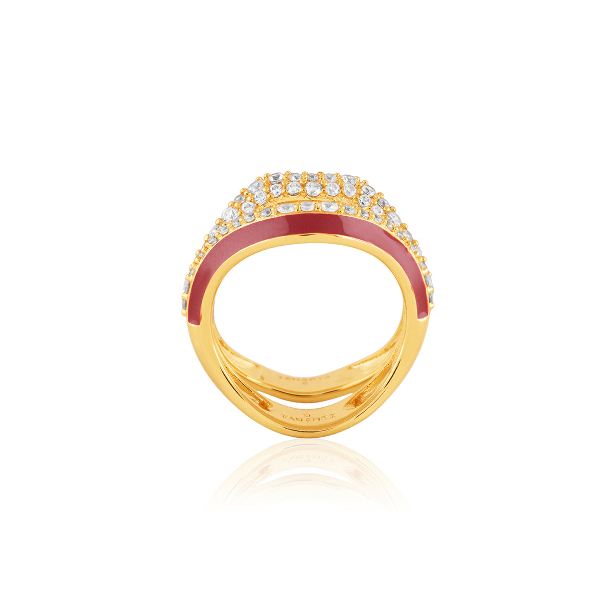 Bold, stackable, and surreal—this 18k gold-plated ring dazzles with crystal zirconia and enamel detailing. Crafted in brass and hypoallergenic, it’s made for parties, cocktails, and every statement moment. Style it your way—shop I For Isharya now.
