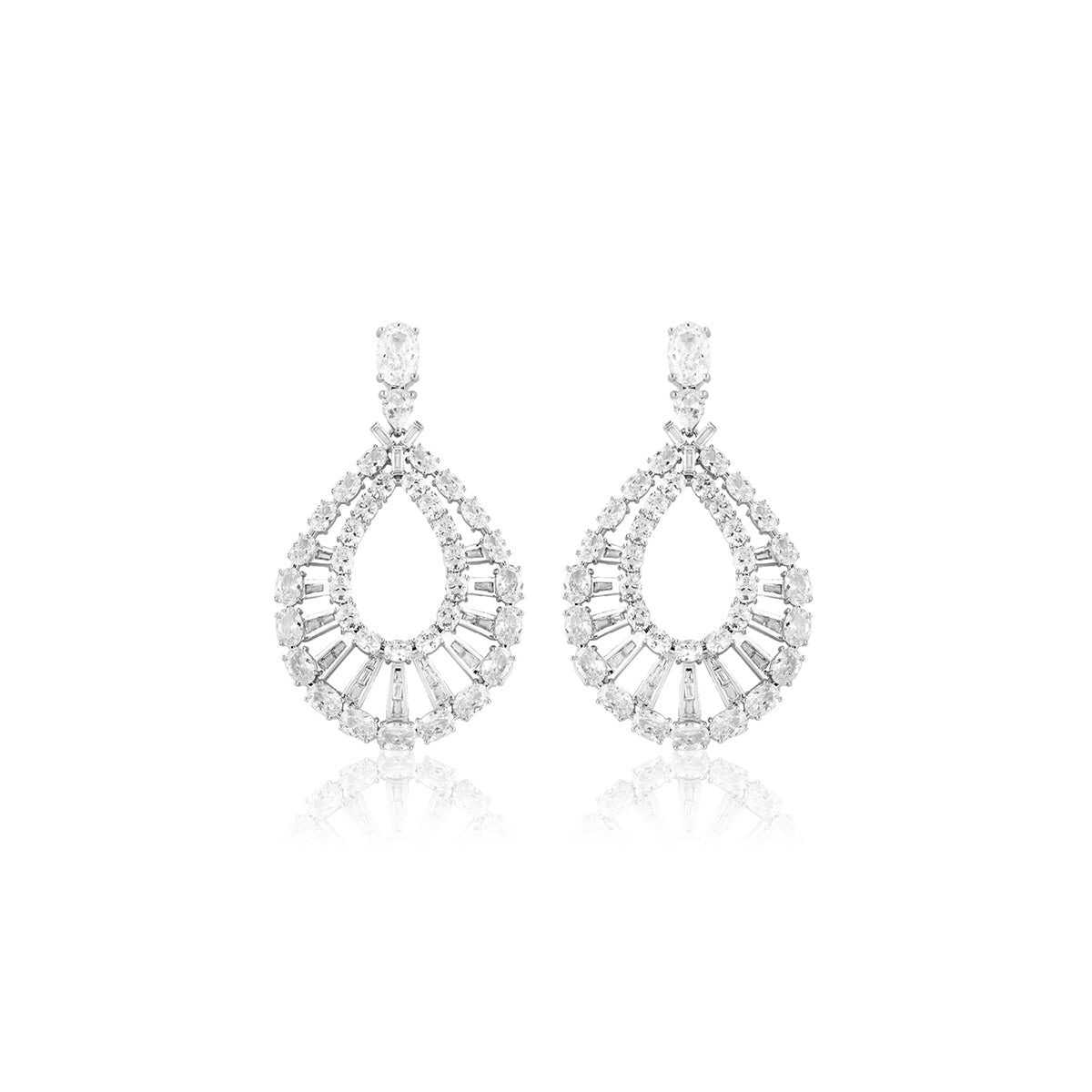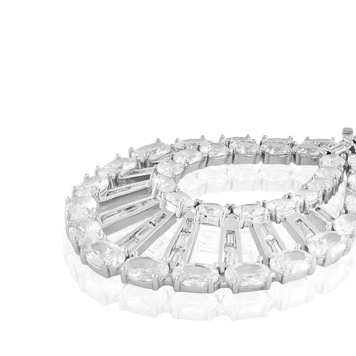 Turn heads with Isharya’s dangler earrings, featuring special-cut crystal zirconia stones. Crafted in brass with rhodium plating, these hypoallergenic statement earrings exude timeless glamour. Perfect for weddings, festive soirées, and cocktail nights. Shop unmatched luxury now.