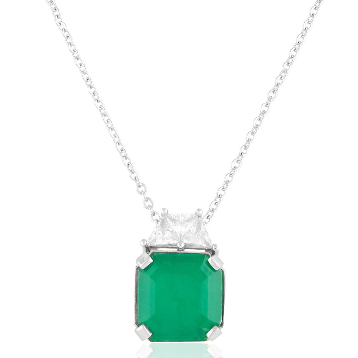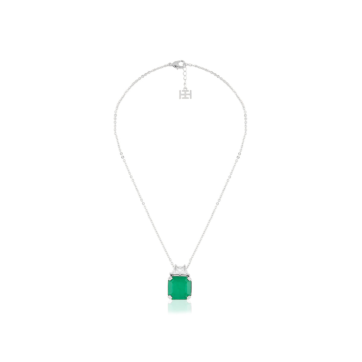 Inspired by the Art Deco era, this white and green necklace stuns with crystal zirconia and Botox emeralds. A rhodium-plated brass masterpiece, hypoallergenic and luxe—ideal for cocktail nights and celebrations. Own your statement look today.