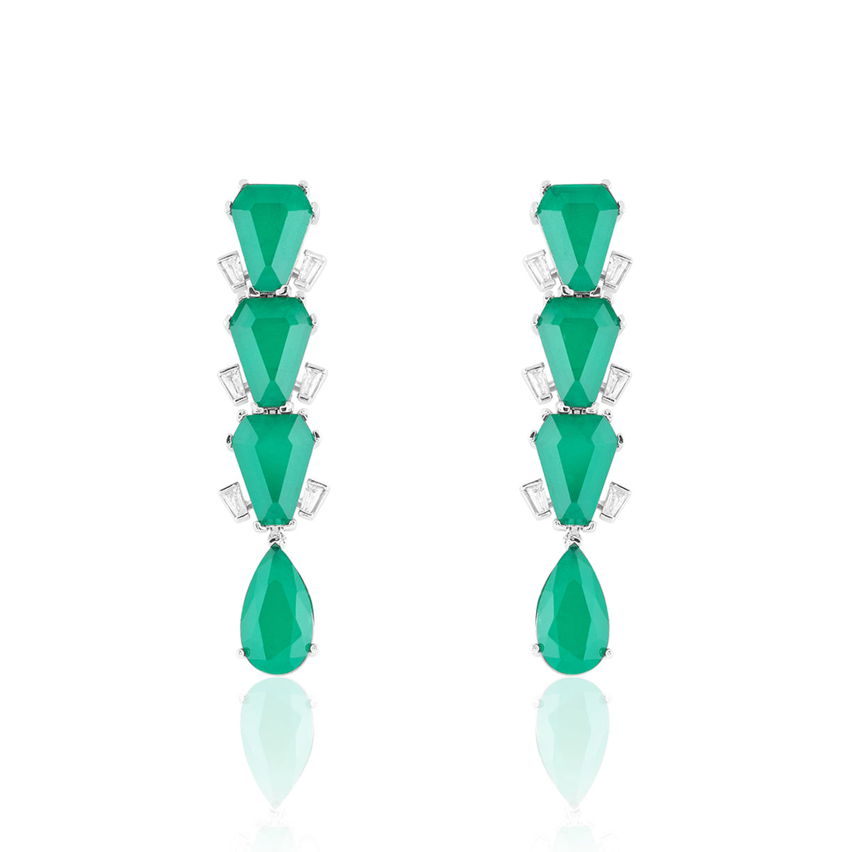 Turn heads with Isharya’s white and green earrings, featuring special-cut Botox emeralds. Crafted in brass with rhodium plating, these hypoallergenic statement earrings exude timeless glamour. Perfect for weddings, festive soirées, and cocktail nights. Shop unmatched luxury now.