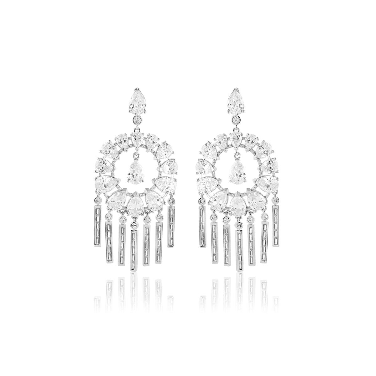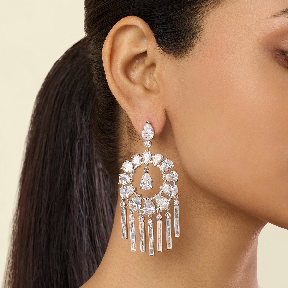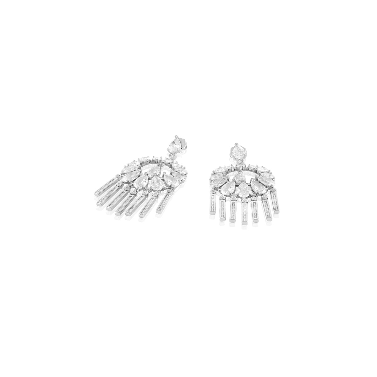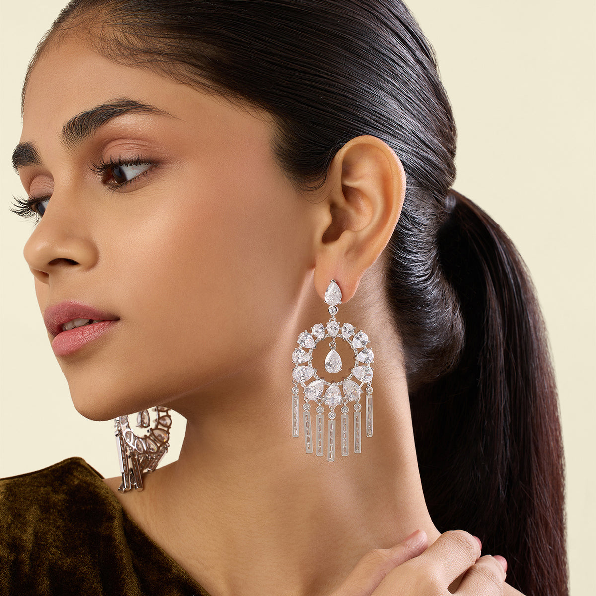 Turn heads with Isharya’s chaandbaali earrings, featuring special-cut crystal zirconia stones. Crafted in brass with rhodium plating, these hypoallergenic statement earrings exude timeless glamour. Perfect for weddings, festive soirées, and cocktail nights. Shop unmatched luxury now.