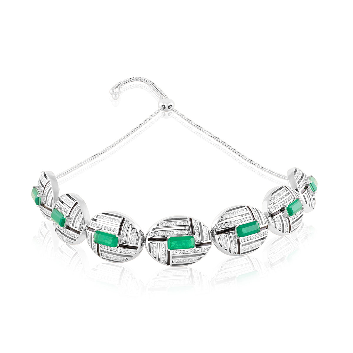 Inspired by the Art Deco era, this white and green necklace stuns with crystal zirconia and Botox emeralds. A rhodium-plated brass masterpiece, hypoallergenic and luxe—ideal for cocktail nights and celebrations. Own your statement look today.