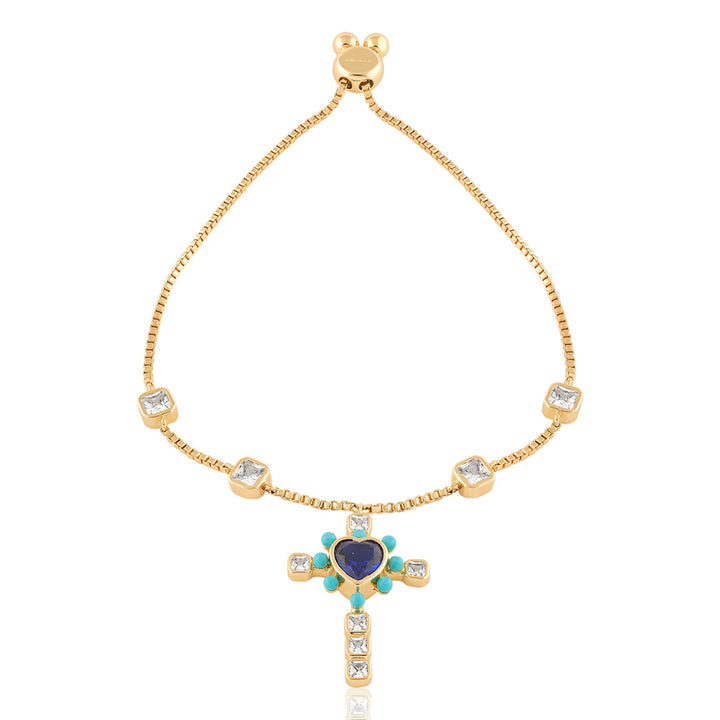 Inspired by the playful spirit of summer, this bracelet is crafted in brass and plated with 18k gold. Featuring crystal zirconia and lapis lazuli stones, this lightweight bracelet offers the perfect pop of colour to your summer wrist stack.