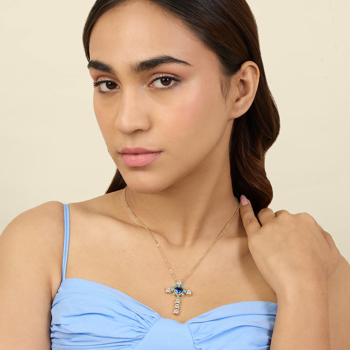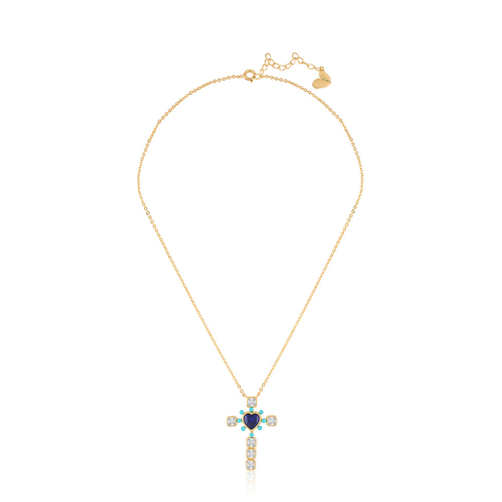 Inspired by the playful spirit of summer, this necklace is crafted in brass and plated with 18k gold. Featuring crystal zirconia and lapis lazuli stones, this lightweight necklace offers the perfect pop of colour to your summer neck stack.