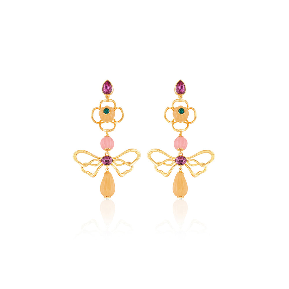 Bold meets botanical in these statement earrings crafted in 18k gold-plated brass, with crystal zirconia and resin work in dark rose and gold. Hypoallergenic and garden-inspired, they’re made to turn heads.