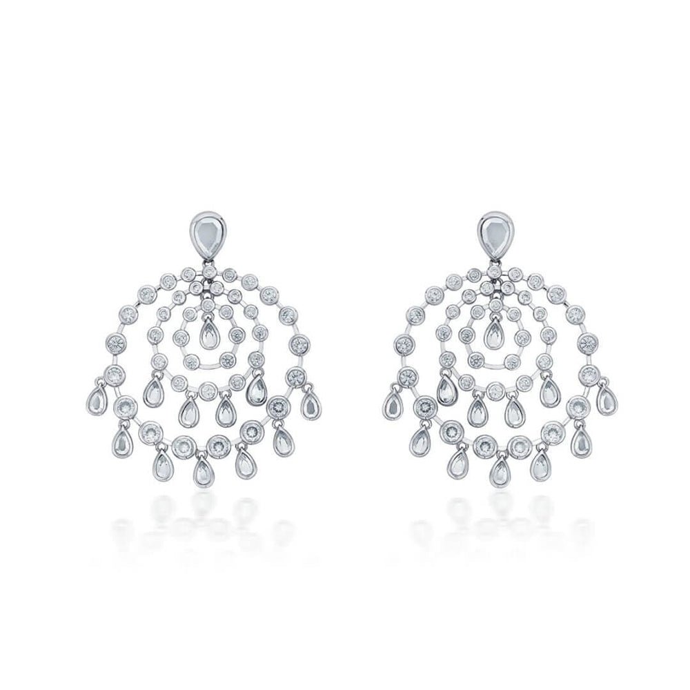 Dainty chandbalis handcrafted with mirror, CZ and rhodium-plated brass. Sweep your hair into a low bun or wear it slicked back with a swipe of vibrant fuchsia lipstick for a vintage YSL-inspired look.
