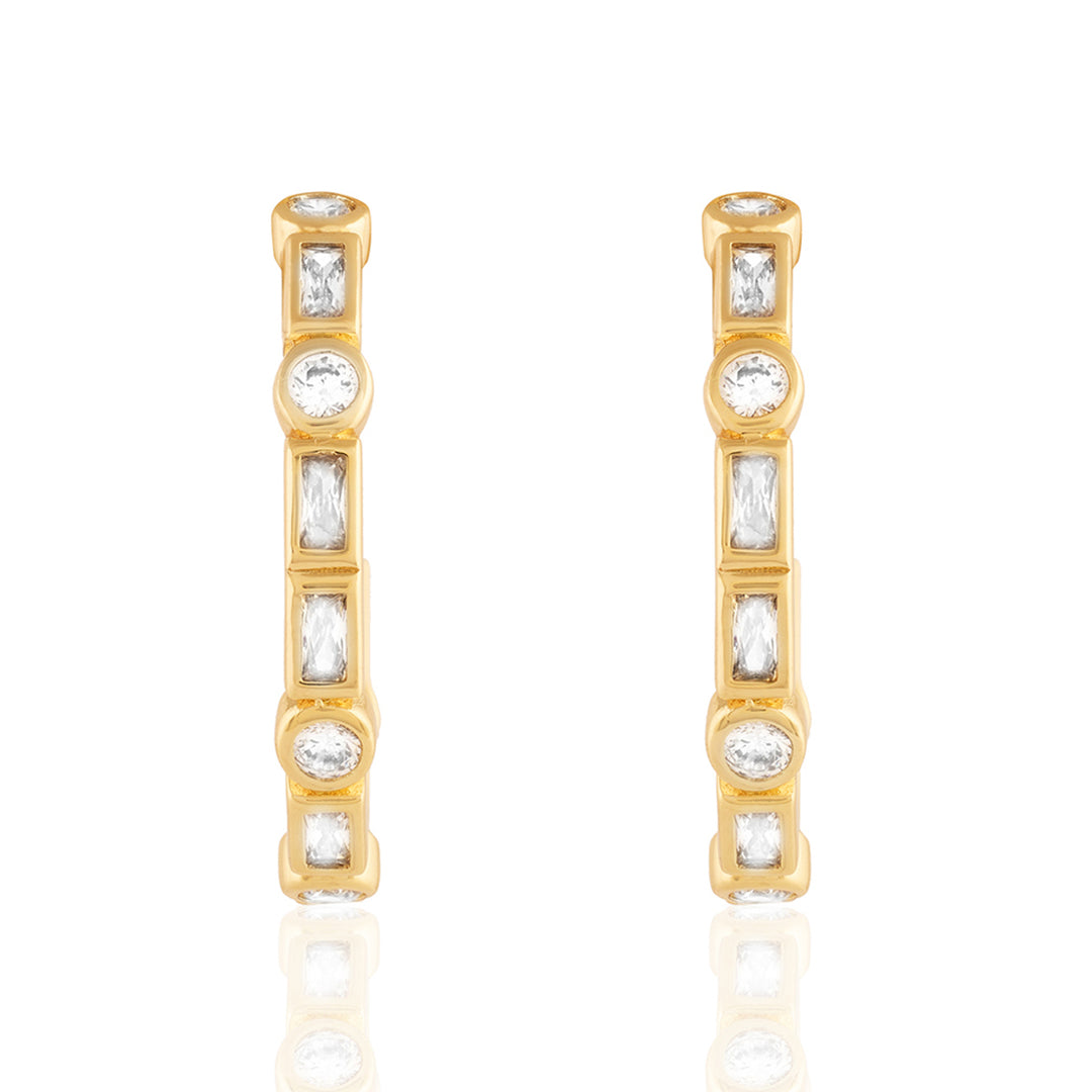 Inspired by the playful spirit of summer, these earrings are crafted in brass and plated with 18k gold. Featuring brilliant crystal zirconia stones, these lightweight earrings offer the perfect pops of shimmer to everything from sundresses to linen shirts.