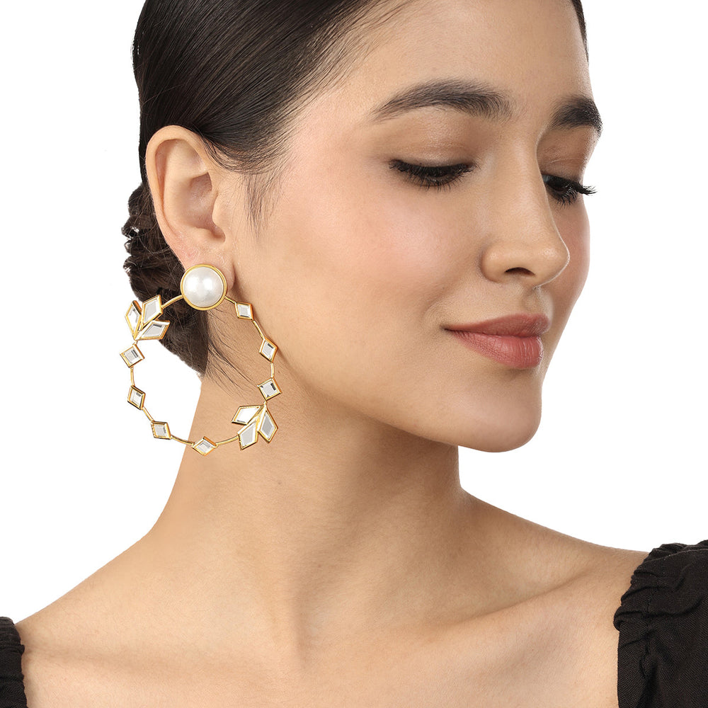 - Material: Mirror, Pearls, CZ & 18Kt Gold Plating