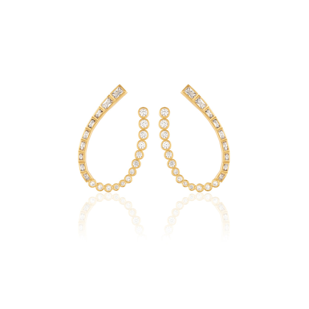 Inspired by the playful spirit of summer, these earrings are crafted in brass and plated with 18k gold. Featuring brilliant crystal zirconia stones, these lightweight earrings offer the perfect pops of shimmer to everything from sundresses to linen shirts.