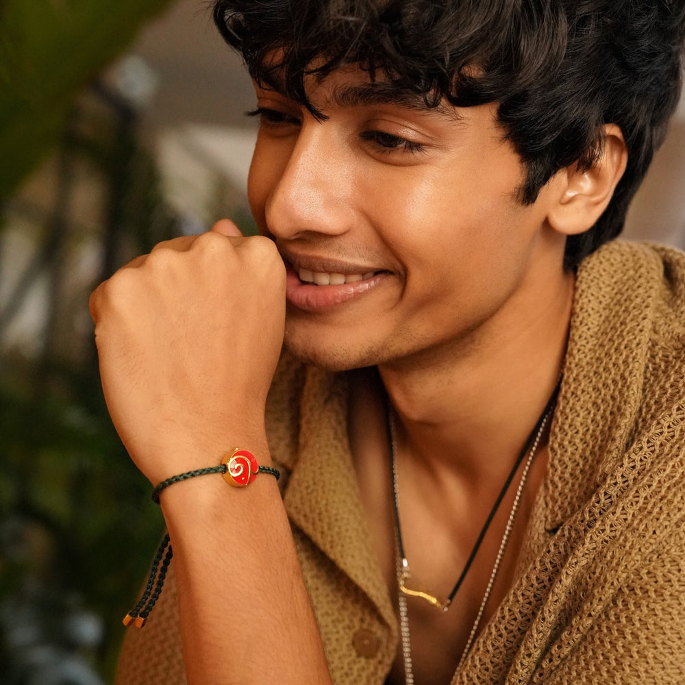 Unisex bolo-style braided cord bracelet in 18K gold-plated accents. Wear it solo or DIY it with your favourite charms from PLAY! By Isharya.